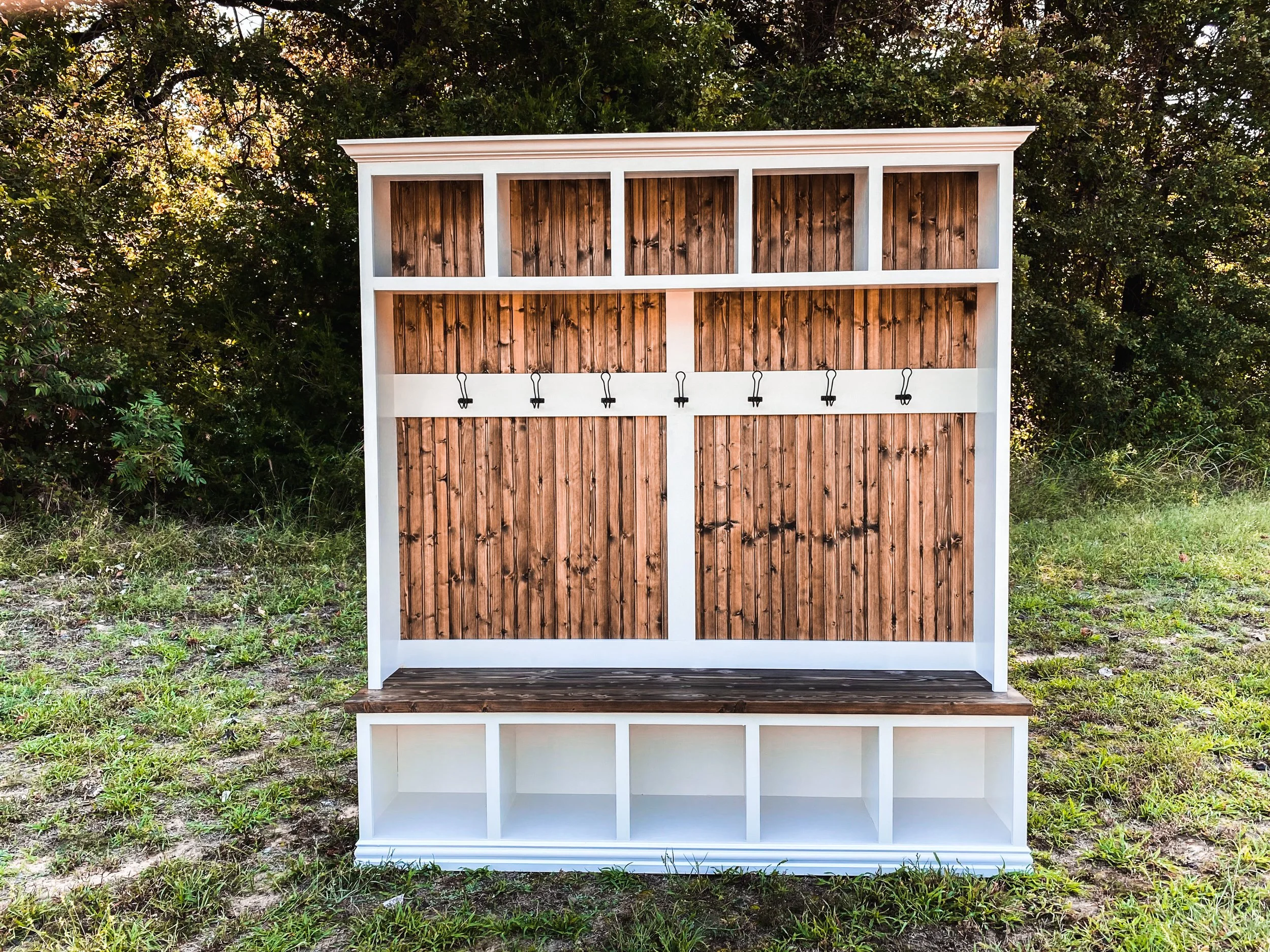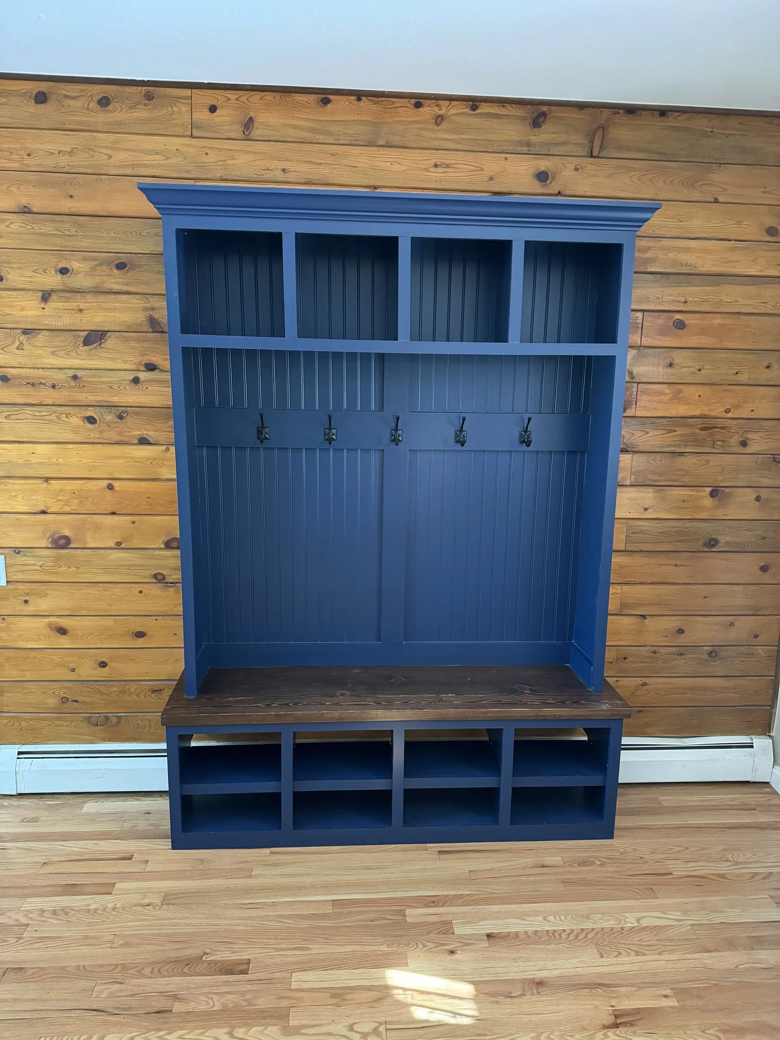 All built-ins and hall trees are made with real wood, we do not use MDF or particle board.